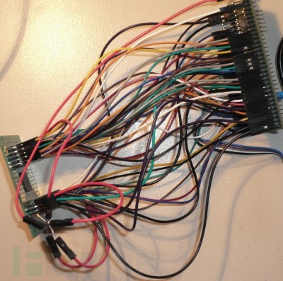 调制解调器的闪存经过脱焊后连接到适配器板(左侧)。读取固件的方法来可能看起来有些荒唐,但确实有效